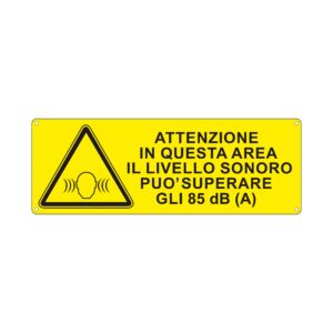 Dicitura: ATTENZIONE IN QUESTA AREA IL LIVELLO SONORO PUÓ SUPERARE GLI 85dB (A)