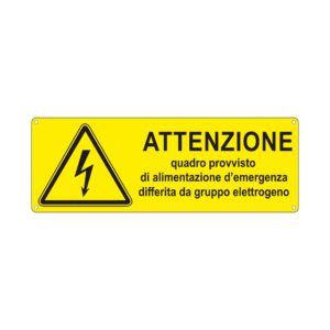 Dicitura: ATTENZIONE QUADRO PROVVISTO DI ALIMENTAZIONE D’EMERGENZA DIFFERITA DA GRUPPO ELETTROGENO